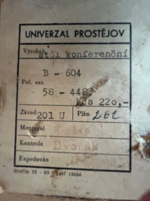 Model B-604 of the coffee/conference table was produced by Univerzal Factory in Prostějov, Czechoslovakia, in the 1950s.