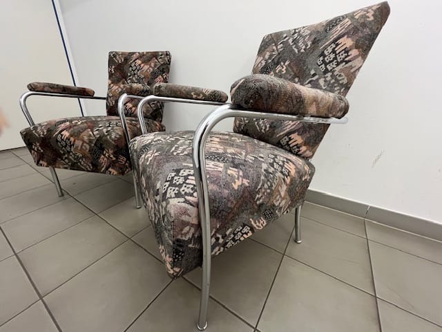 These tubular armchairs were designed by the important Hungarian designer József Peresztegi in the tradition of BAUHAUS but in his original style.